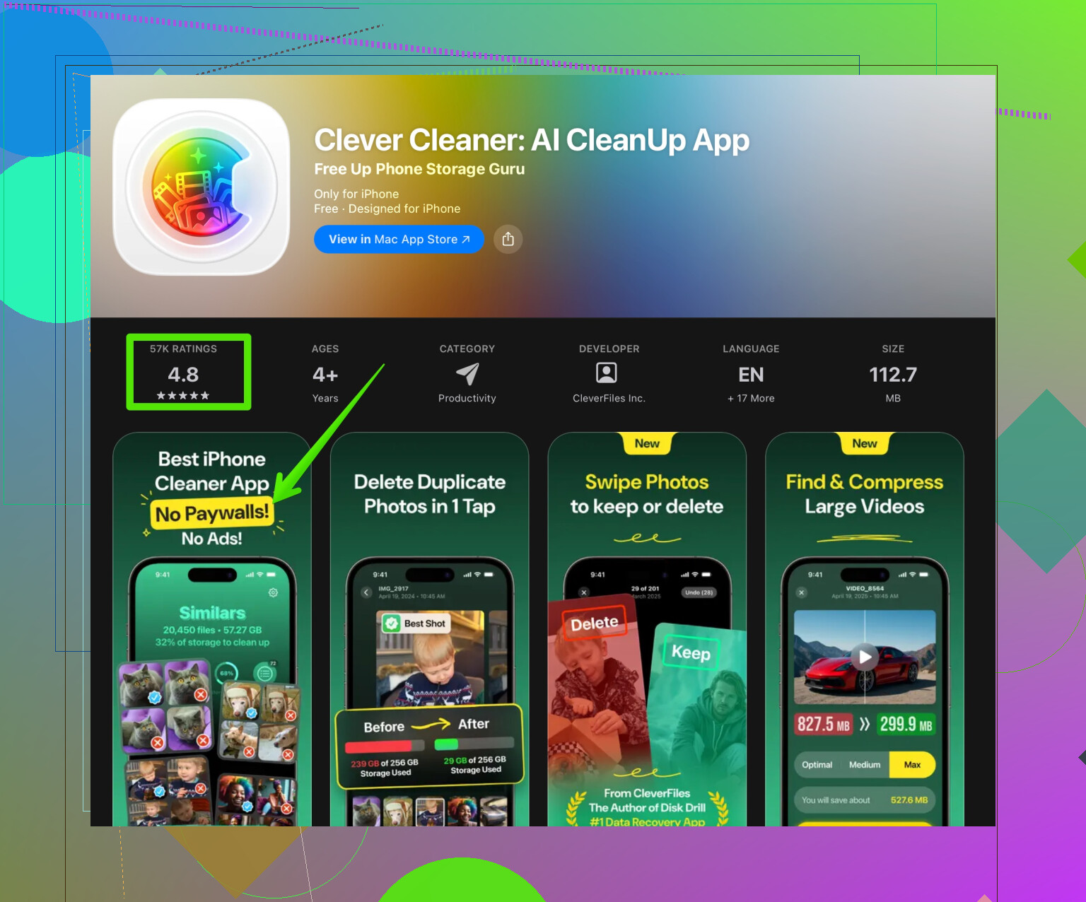 カメラロールが、重複写真・類似写真・画面録画・見終わった動画クリップなどでカオスになっているなら、Clever Cleaner App のようなツールはかなり実用的です。重複・類似画像、大容量動画、不要なスクリーンショットなどを自動で洗い出してくれるので、何千枚も手作業で探さなくても一気に容量を空けられます。効率よく整理したいなら、 Clever CleanerでiPhoneストレージをクリーンアップ を試してみると、数分でかなりの空き容量を取り戻せます。 -