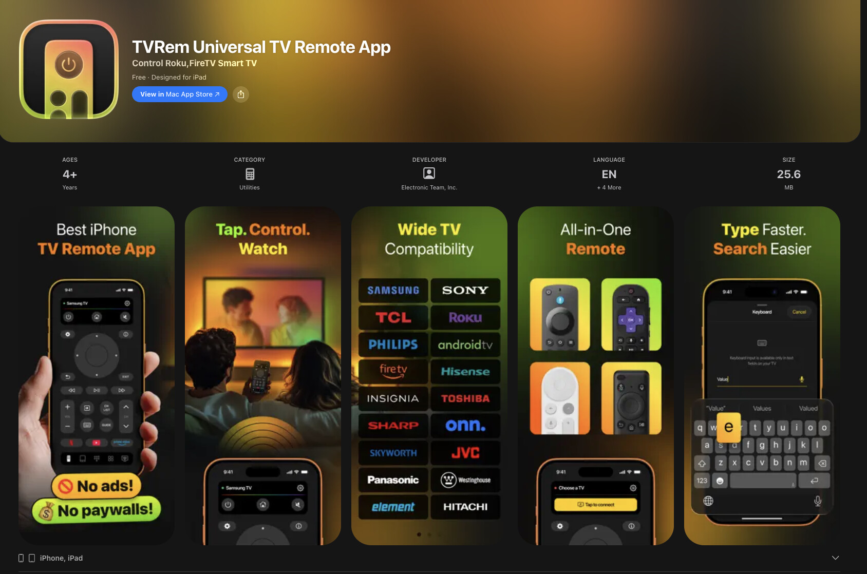 This Samsung TV remote app works with Samsung Smart TVs running their own operating system, allowing you to change channels, adjust volume, launch apps, and enter text directly from your iPhone. Simple, reliable, and completely free.