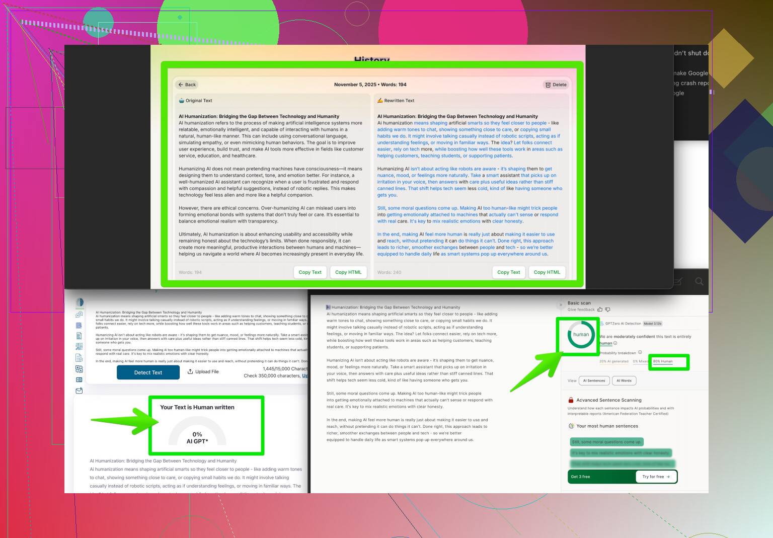 Or just handwrite the first draft—AI detectors can’t scan your notebook (yet). Besides, a lot of stuff on reddit goes over AI detector tips; checkout Reddit’s top strategies for humanizing AI essays if you wanna deep dive.