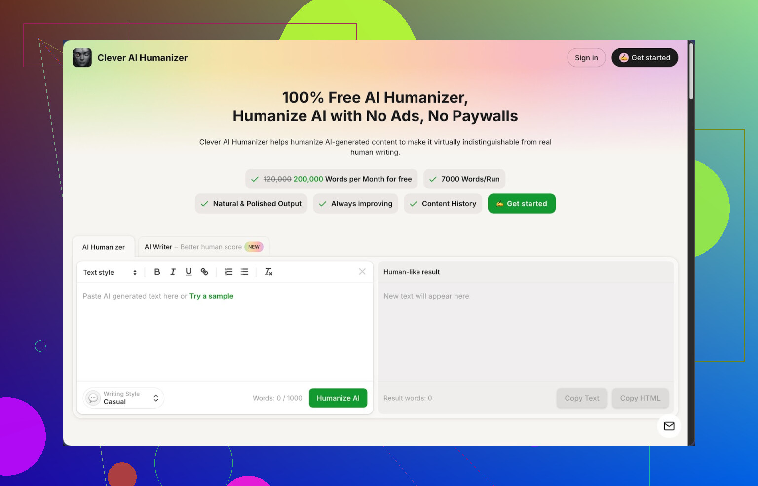 I write a lot with AI, and the pattern is always the same: it reads flat, too clean, and detectors slam it as 100% AI. So I spent an afternoon going through tools that promise to “fix” this. Clever AI Humanizer is the one I kept open. Not because it is perfect, but because the tradeoffs made sense.