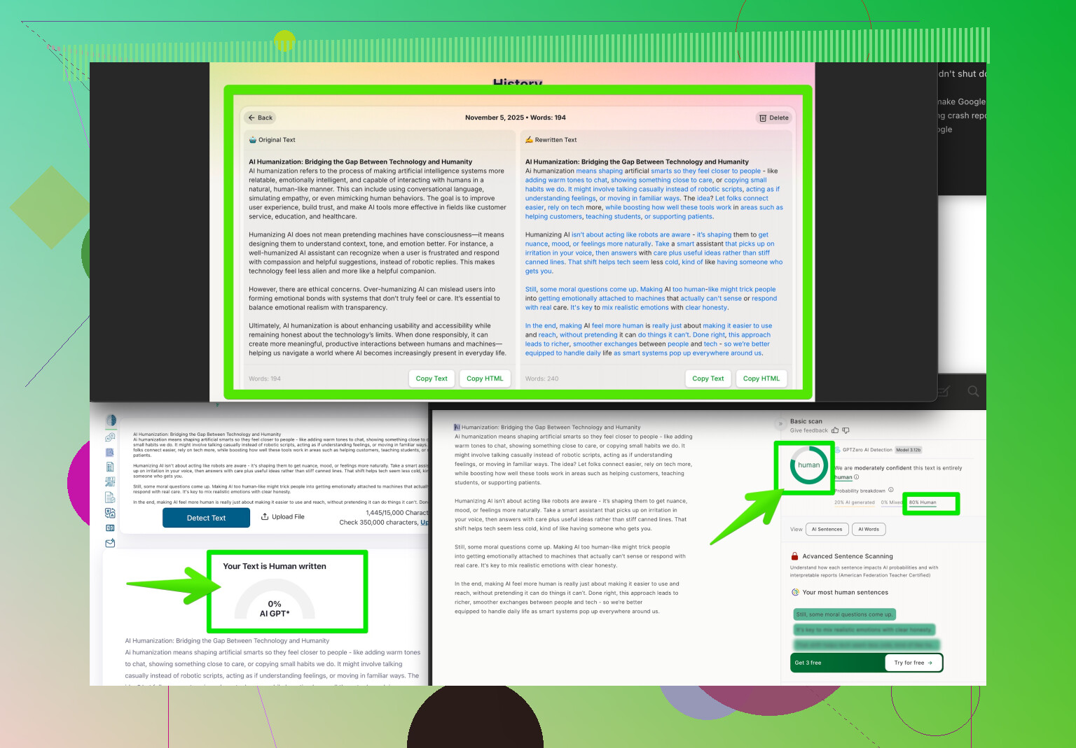 Neither competitor mentioned the fact that what you actually wrote sometimes gets lost when you start humanizing to game the bots. If your program expects dry, formal, academic tone, and your “humanized” draft comes out breezy, professors might get suspicious about style shifts even if the content’s original. There’s also the question of cost if you’re using premium versions of these tools.