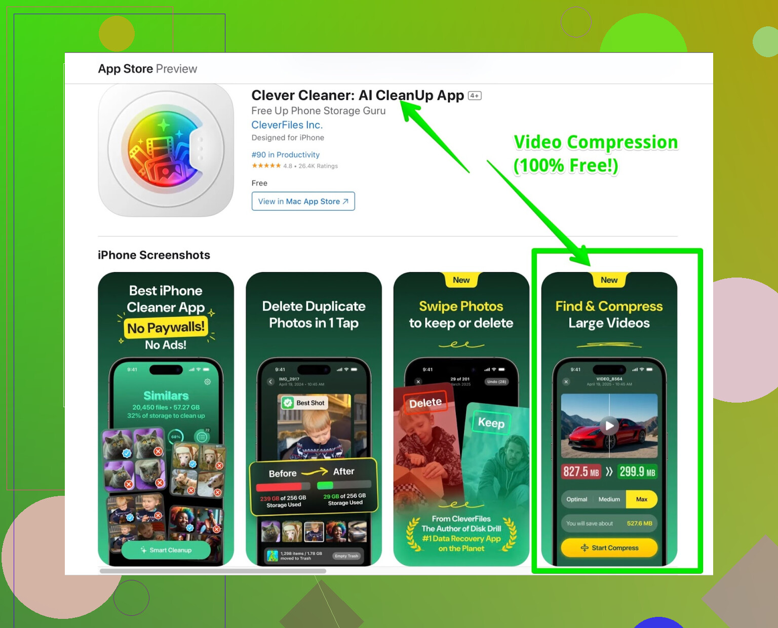 Bottom line: apps like Clever Cleaner are pretty much the only way to get actually significant compression, especially in bulk, without mangling image quality. If you want actual details on what it does (check out simplifying iPhone image management and storage cleanup for the rundown), that’ll give you more space with less drama.