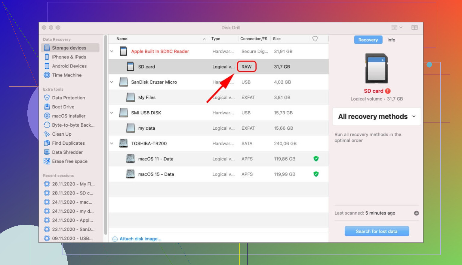 - Recover files from the clone or from the RAW partition with Disk Drill.