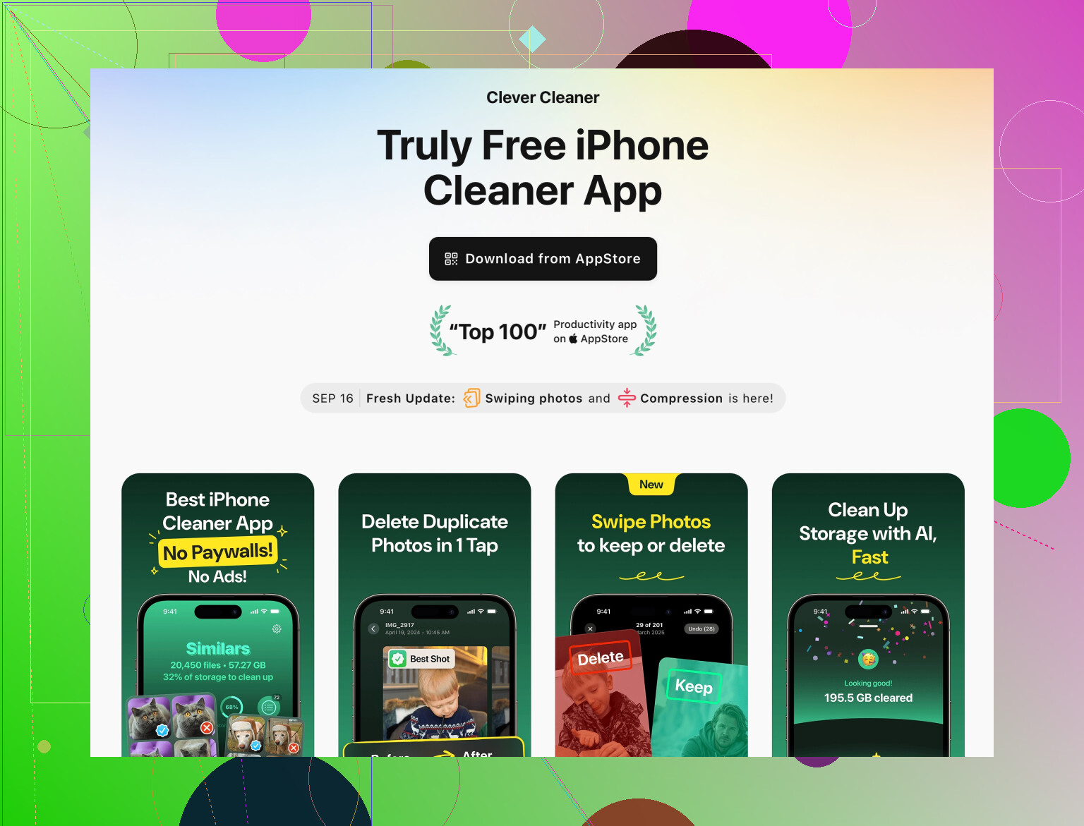 たとえばiPhone用Clever Cleaner Appは、重複写真や大きな動画、不要なゴミデータを見つけてくれる