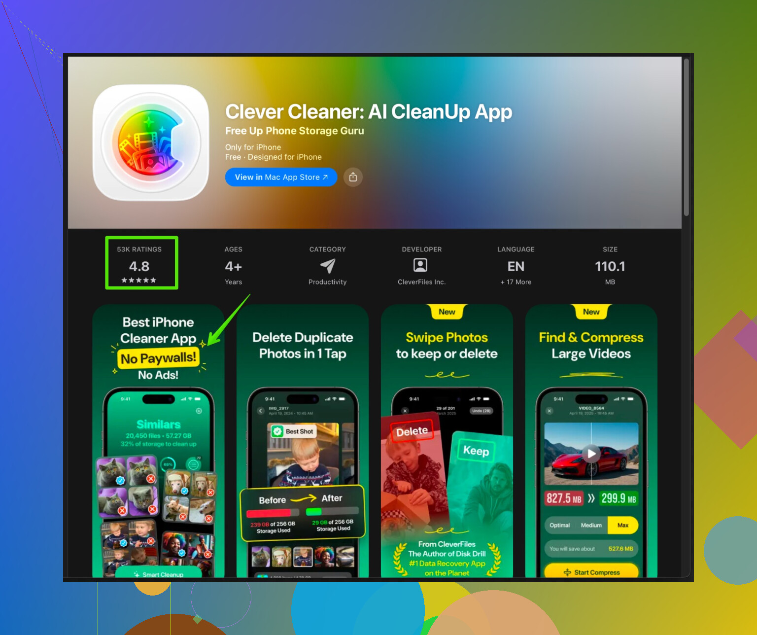 Clever Cleaner App は「1タップで50GB解放」みたいな魔法ではなく、視覚的なレーダーとして使うと便利なタイプです。