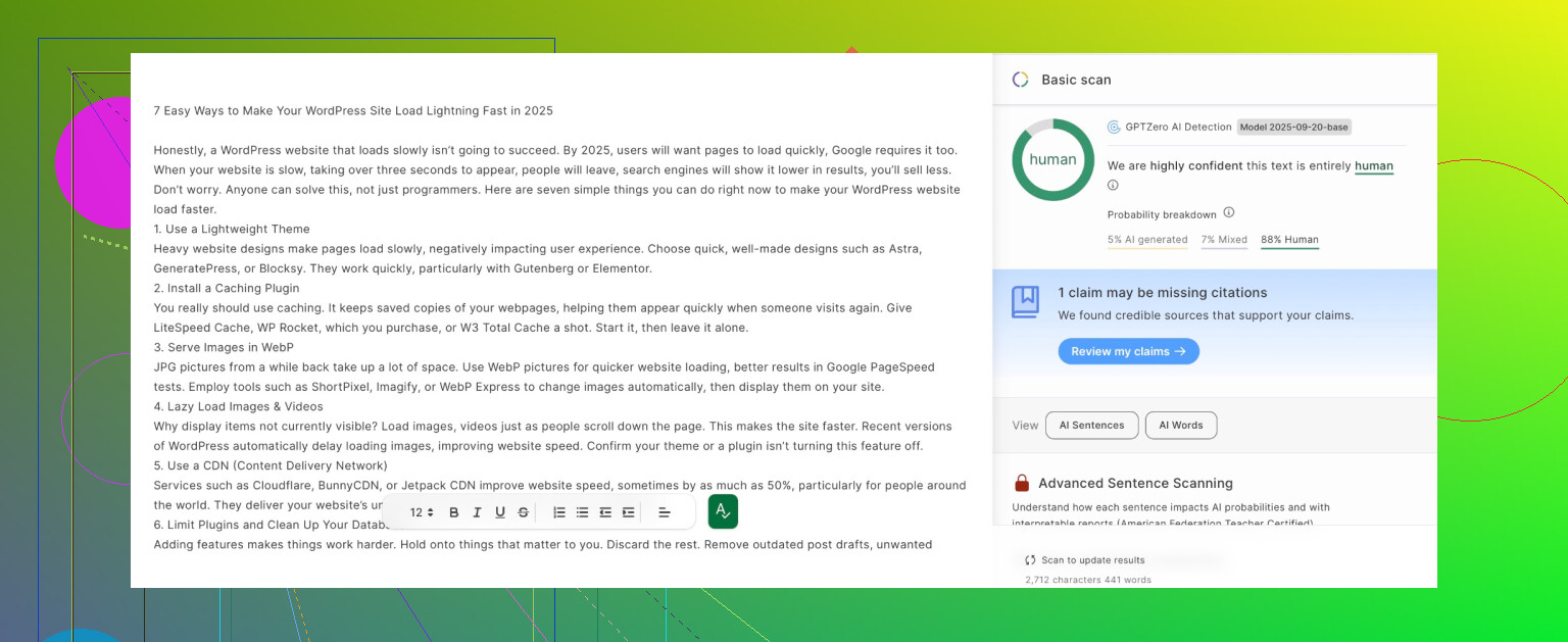 I ran my cleverly humanized texts through a bunch of detection websites. On the OG, untouched AI output, every site screamed “THIS IS A ROBOT.” But after the humanizer, the “AI” warnings tanked—usually down to 13% or less. No joke.